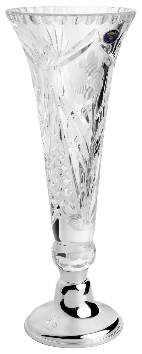 Kristallimaljakko, jalka hopeaa. Korkeus 310 mm.